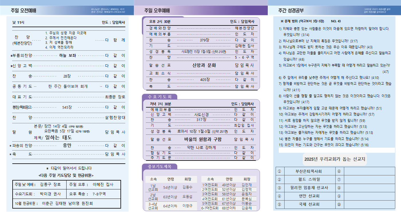 10월 19일 주일 주보