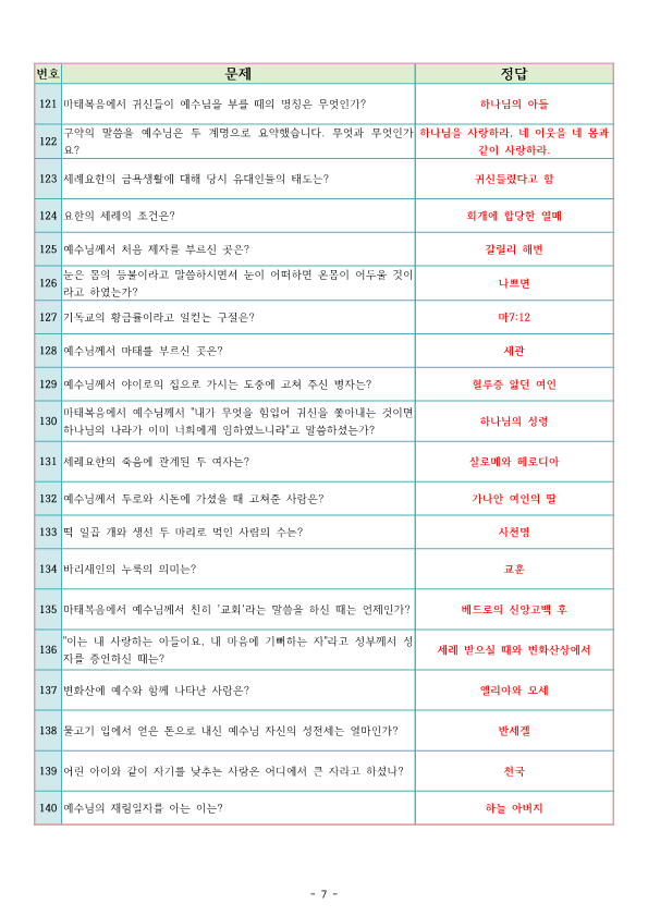 주간 성경공부 참고 구절 및 답안지 수정본입니다.