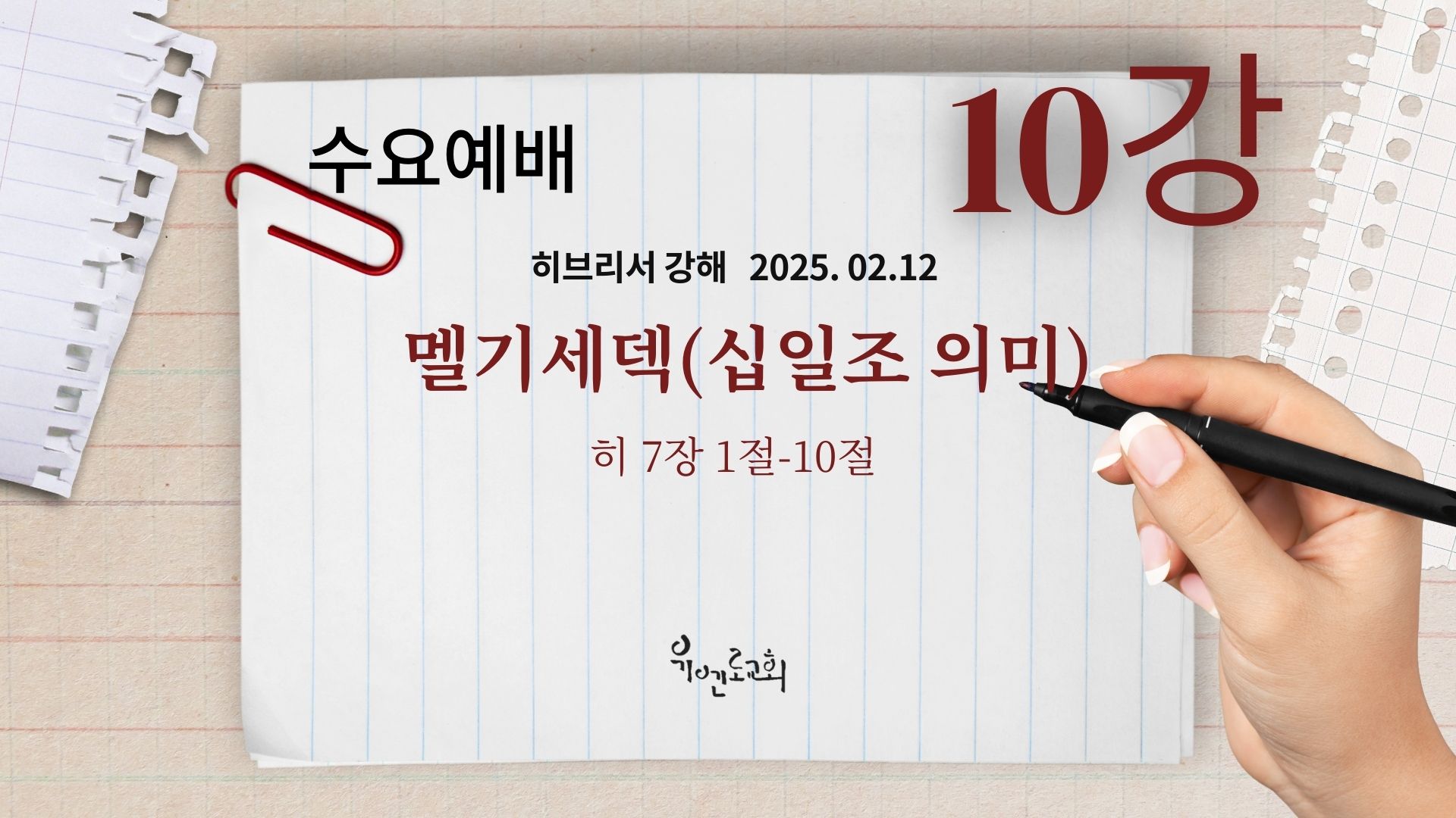 [성경본문] 히브리서7:1-10절 개역개정1. 이 멜기세덱은 살렘 왕이요 지극히 높으신 하나님의 제사장이라 여러 왕을 쳐서 죽이고 돌아오는 아브라함을 만나 복을 빈 자라 2. 아브라함이 모든 것의 십분의 일을 그에게 나누어 주니라 그 이름을 해석하면 먼저는 의의 왕이요 그 다음은 살렘 왕이니 곧 평강의 왕이요 3. 아버지도 없고 어머니도 없고 족보도 없고 시작한 날도 없고 생명의 끝도 없어 하나님의 아들과 닮아서 항상 제사장으로 있느니라 4. 이 사람이 얼마나 높은가를 생각해 보라 조상 아브라함도 노략물 중 십분의 일을 그에게 주었느니라 5. 레위의 아들들 가운데 제사장의 직분을 받은 자들은 율법을 따라 아브라함의 허리에서 난 자라도 자기 형제인 백성에게서 십분의 일을 취하라는 명령을 받았으나 6. 레위 족보에 들지 아니한 멜기세덱은 아브라함에게서 십분의 일을 취하고 약속을 받은 그를 위하여 복을 빌었나니 7. 논란의 여지 없이 낮은 자가 높은 자에게서 축복을 받느니라 8. 또 여기는 죽을 자들이 십분의 일을 받으나 저기는 산다고 증거를 얻은 자가 받았느니라 9. 또한 십분의 일을 받는 레위도 아브라함으로 말미암아 십분의 일을 바쳤다고 할 수 있나니 10. 이는 멜기세덱이 아브라함을 만날 때에 레위는 이미 자기 조상의 허리에 있었음이라