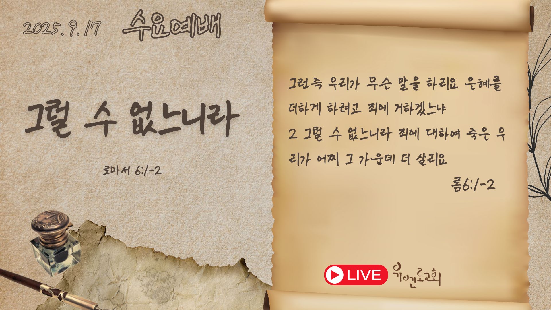 2. 그럴 수 없느니라 죄에 대하여 죽은 우리가 어찌 그 가운데 더 살리요