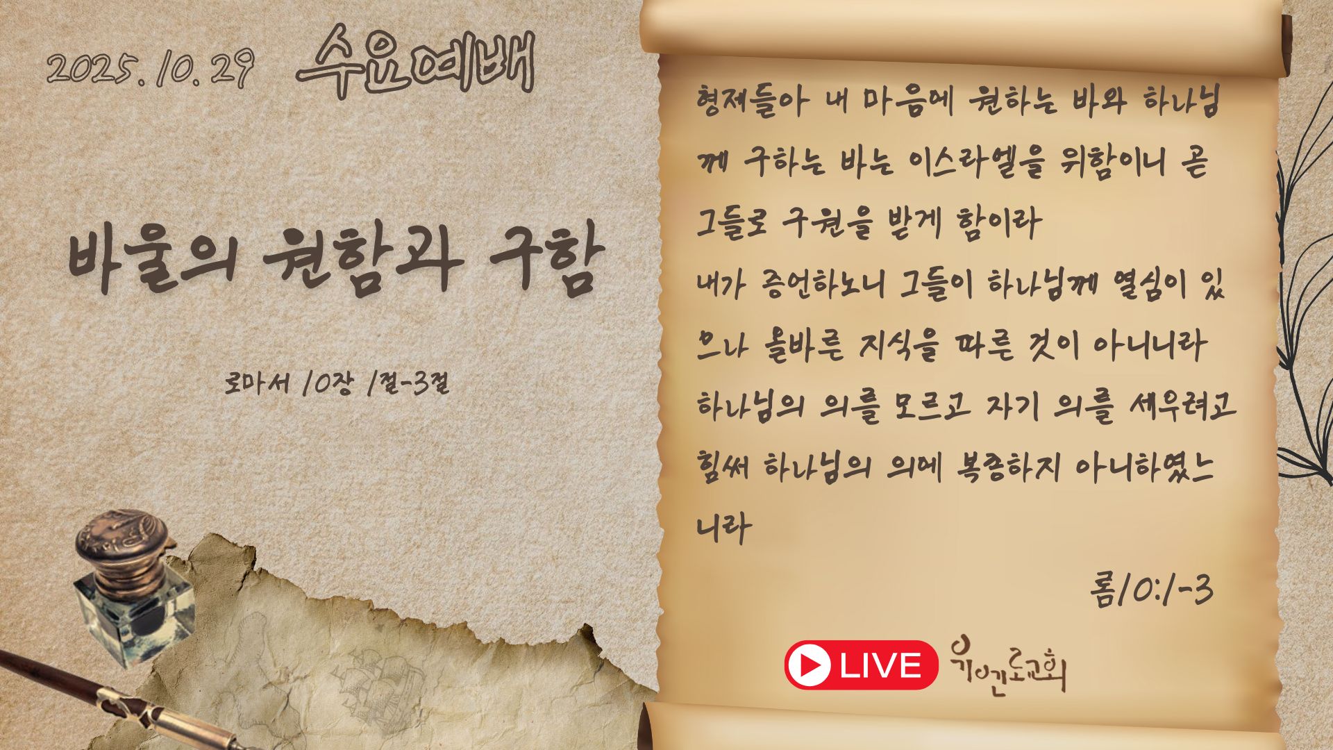 | 바물의 원함과 구함 | 유현균담임목사 | 2025-10-29 | |||