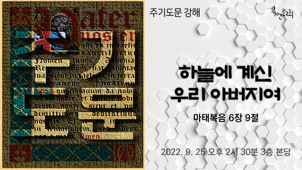 9. 그러므로 너희는 이렇게 기도하라 하늘에 계신 우리 아버지여 이름이 거룩히 여김을 받으시오며