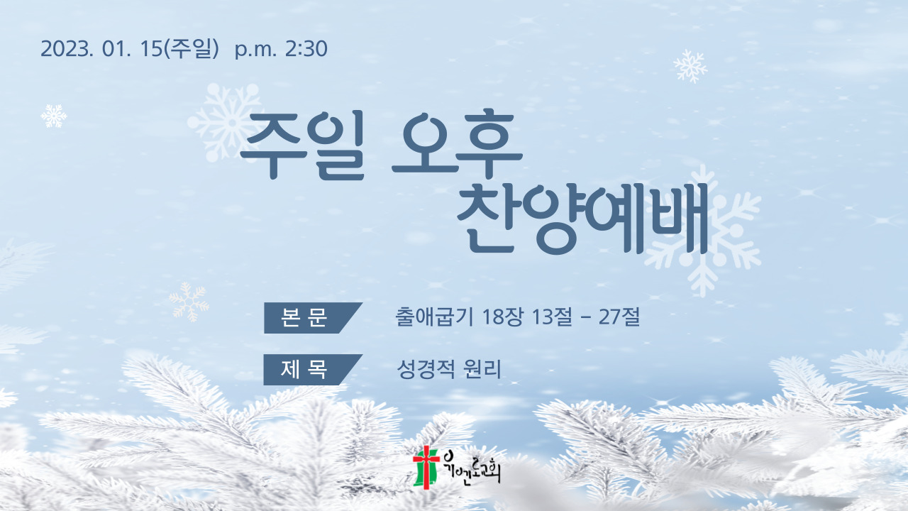 | 2023-01-15 주일 오후 찬양 예배 | 유현균목사 | 2023-01-15 | |||