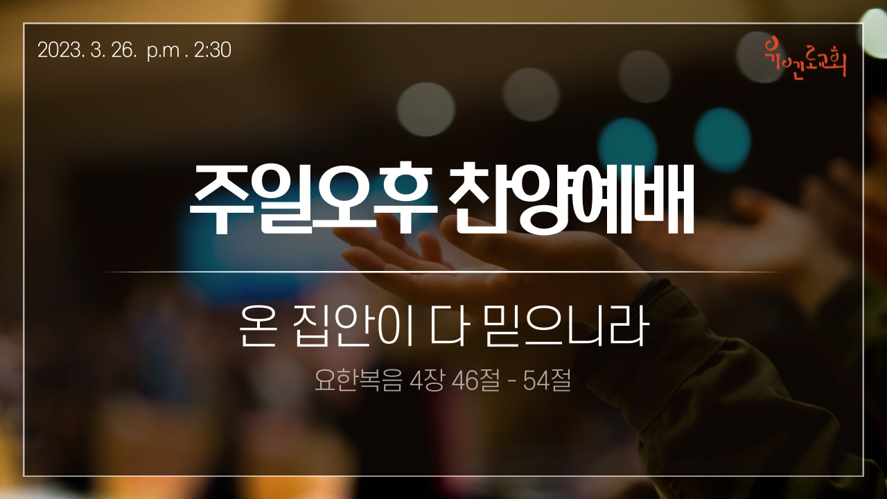 | 2023년 3월 26일 주일 오후 찬양 예배 | 이재호 부목사 | 2023-03-26 | |||
