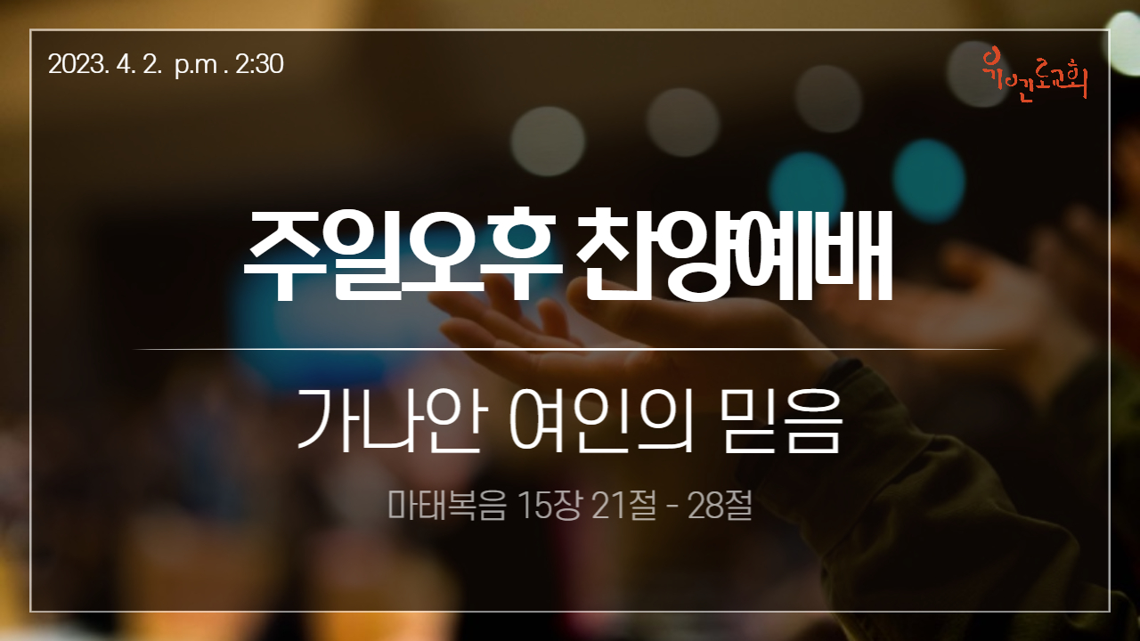 | 2023년 4월 2일 주일 오후 찬양 예배 | 오인숙 전도사 | 2023-04-02 | |||