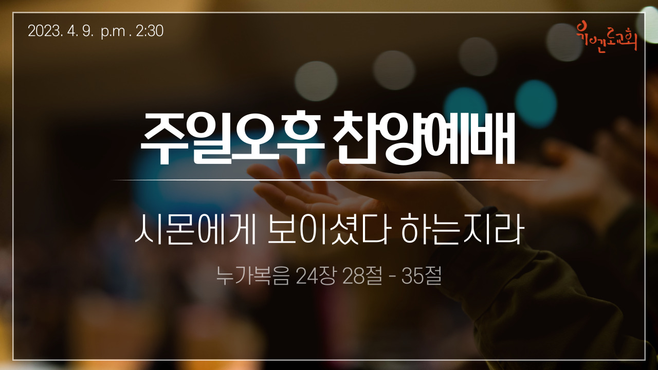 | 2023년 4월 9일 오후 찬양 예배 | 이재호 부목사 | 2023-04-09 | |||