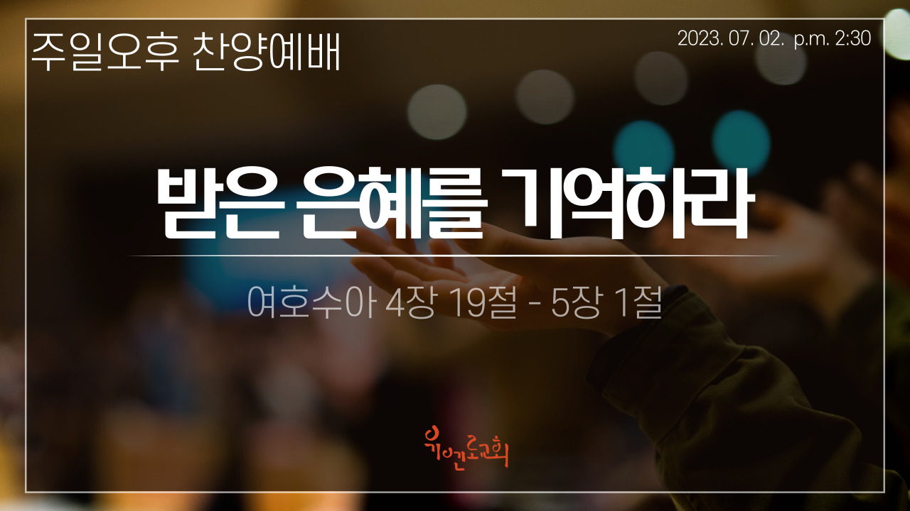 | 2023년 7월 2일 주일 오후 찬양 예배 | 이재호 부목사 | 2023-07-02 | |||